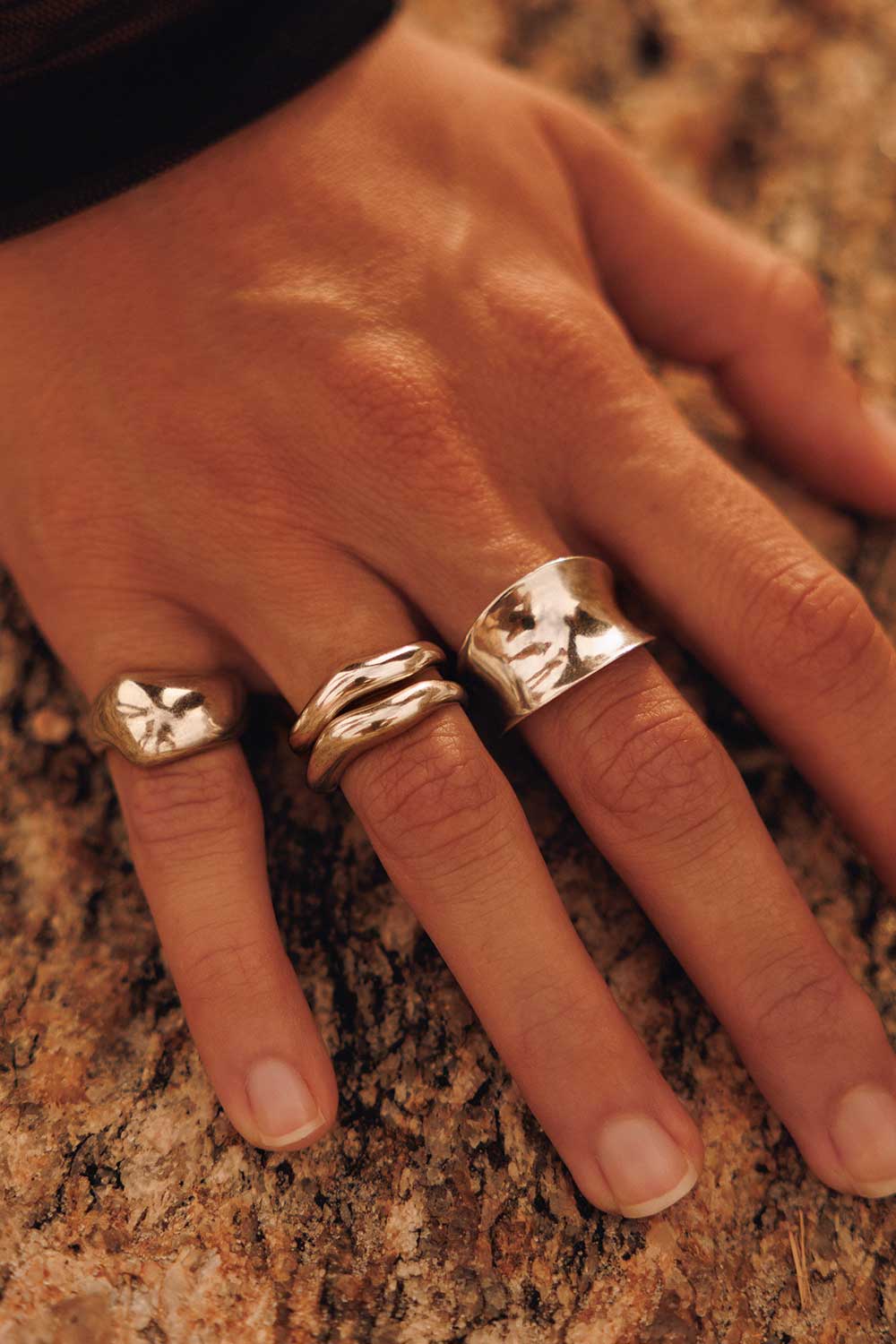 The Majo Ring is understated, polished, and effortlessly wearable. Handcrafted in Brazil and finished in an antiqued 925 silver tone, its sculptural form feels refined yet natural on the hand. Lightweight and fully adjustable, it is designed for everyday wear.